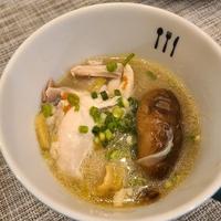 炊飯器のスイッチポン!で、お手軽サムゲタン風!驚くほど簡単に本格的な味わいが楽しめます。鶏手羽元の旨みが溶け出した、とろりとしたスープは、シンプルな味わいながらも体にほっと染み渡るおいしさです。