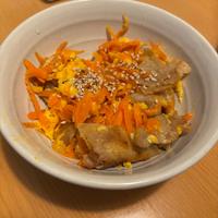 にんじんと豚バラ肉を使ってにんじんの玉子炒めを作りました。あまじょっぱい味付けになっているのでご飯と一緒に食べるとついつい箸が進みますよ。ごまが好きな方は多目にかけて食べると、ごまの風味が香って更に美味しくなるのでオススメです。簡単なので、是非作ってみてください。