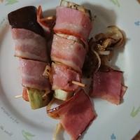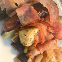 ベーコンと茄子がうまく巻けなくてバラバラになる