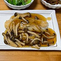 鱈(一口大にカット)の他に、木綿豆腐(レンジで水分をとばしたもの)を大きめにカットして薄力粉をふるって一緒に焼きました(ボリュームup🙆)餡かけは、きのこ三種類、細切り人参、斜め切の長ねぎ。レシピの調味料に生姜(チューブ)をプラスしました😄鱈がぷりぷりで、餡かけと大葉の相性も良くとても美味しかったです❗
