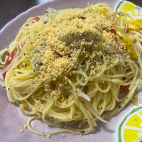 オリーブオイル、黒胡椒、粉チーズを贅沢めに使えば肉系食材なしで十分美味しかったです。