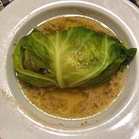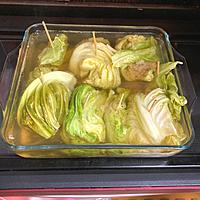 - 3 1に2を乗せて巻き、キャベツの両端を中に詰め込みます。