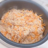 - 2 炊飯釜に米、(A)を入れ、水を2合の目盛りまで注いで軽く混ぜ、1、ツナ油漬けをのせて炊飯します。