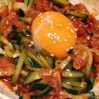 生ハムを使った手軽な一品で、切って和えるだけの簡単レシピです。コチュジャンとごま油で本格的なユッケの味わいを再現でき、きゅうりのシャキシャキ食感とともに楽しめます。生ハム自体の塩味があるため、塩は控えめにするのがポイント。居酒屋風のおつまみとして、ビールとの相性も抜群です。温泉卵やカイワレ大根を添えたり、豆板醤でピリ辛にアレンジしたりと、アレンジも自在です。