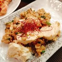 - 6 味が全体になじんだら、器に盛り付けて糸唐辛子をのせて完成です。