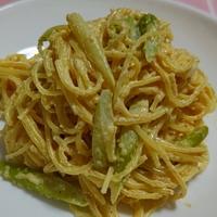 今晩のお食事に、アスパラガスの明太パスタはいかがでしょうか。シャキシャキとした食感のアスパラガスと、塩味がある明太子がよく合い、とてもおいしいですよ。スパゲティ以外のパスタでもお作りいただけるので、ぜひお試しくださいね。