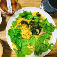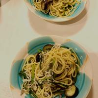 春菊とナスを組み合わせて和風スパゲティにしてみました。春菊の味わいにナスがよく合います。中火で短時間に炒めると野菜の旨味が引き立ちます。お好みの野菜を入れるとレパートリーが広がりますので、是非お試しくださいね。