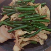 にんにくの芽はレンチンしてから、豚小間切れ200gで作りました。オイスターソースの旨味が出ていて美味しかったです。