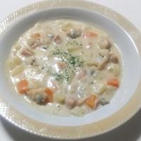 シーフードはアサリのむき身のみですが、魚介の旨味がしっかり出てとっても美味しいチャウダーになりました💖具材を小さく切ってあるので煮込み時間が短くて済むのもいいですね✨