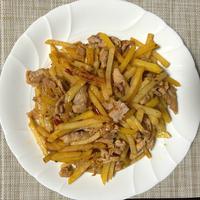 新じゃがいもと豚バラ肉のピリ辛みそ炒めはいかがでしょうか。新じゃがいもは千切りにしてさっと炒めるとシャキシャキした食感が味わえますよ。豚バラ肉の旨味がアクセントになりクセになる美味しさです。ピリ辛な味付けなのでお酒のお供にも最適です。