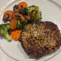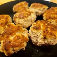 優しい風味のドイツ風ハンバーグ/フリカデレンに挑戦、ソースは粒マスタードベース まずまずの出来 ハンバーグの世界もスパイスやハーブの使い方などで、和風、欧州風、アメリカ風、中東風などヴァリエーション豊かで奥が深そう