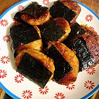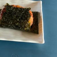 - 5 焼のりで巻いて、皿に盛り付けて完成です。