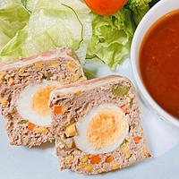 簡単なのに、とっても豪華で華やかなミートローフ。お肉の旨味ととろりとした卵の相性はバツグンです。ソースに肉汁を加えているので、まるで長時間煮込んだようなコクがあります。パーティーやおもてなし、大人数でわいわいとする時にオススメです。是非お試しください。