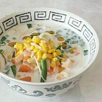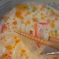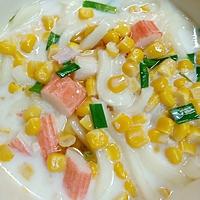 10分でお手軽カニカマでシーフード風のうどんのご紹介です。カニカマのうま味が牛乳のコク、コーンの水煮の甘みとよく合い、おいしいですよ。あっという間にできますので、ぜひお試しくださいね。