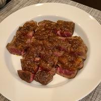酸っぱいのが苦手な私でも酢の酸味が良い!と感じた味でした。一枚400円のサーロインが身近な調味料で作ったソースでお店の味。梅酒とともに美味しく頂きました。