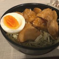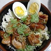鶏むね肉で作る、スタミナ丼のご紹介です。にんにく照り焼きソースを絡めた鶏むね肉と千切りキャベツ、半熟卵の相性は抜群です。がっつりおいしい一品に仕上げました。とても簡単なので、ぜひ作ってみてくださいね。