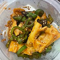 - 4 ピーマンがしんなりしてきたら、2を入れて中火のまま炒め合わせます。