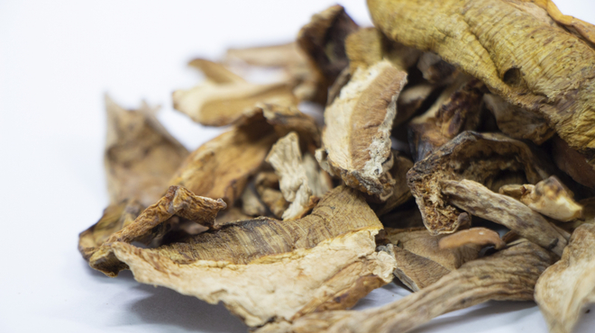肉質はしっかりとしていて、ほどよい食感です。エリンギにも似た歯ごたえのよさが魅力で、火を通すとコリコリッとした食感が楽しめます。味は肉のような濃厚な旨味があり、乾燥したポルチーニを戻した汁も風味豊かでとてもおいしいんですよ。