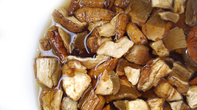日本では生のポルチーニを手に入れることは難しいため、乾燥ポルチーニを使用することがほとんどです。乾燥ポルチーニは使う前にやわらかく戻して下ごしらえをする必要があります。手順は干しシイタケを扱う場合と大差ありません。