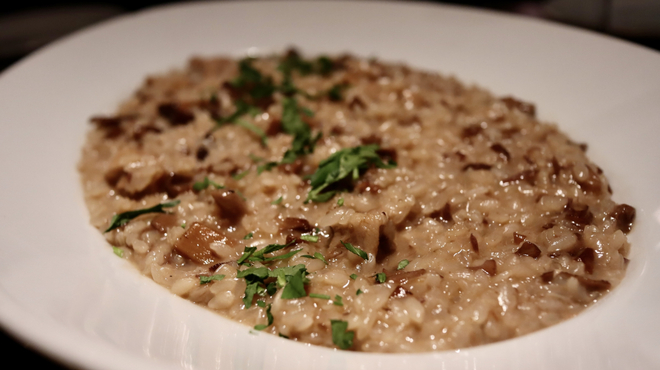 リゾットも凝縮されたポルチーニの旨味を味わえます。クリーム系のリゾットはもちろん、トマト味のリゾットも風味豊かでおいしいですよ。ポルチーニのこりこりとした食感もリゾットの絶妙なアクセントに!