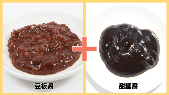 塩気と辛みが強い豆板醤ですが、甘みのある甜麺醤を足すことで、コチュジャンに似た味わいになります。甜麺醤は、炒めて加えるとよりコクがアップしますよ。豆板醤に対し、やや多めの甜麺醤を足すのがポイントです。