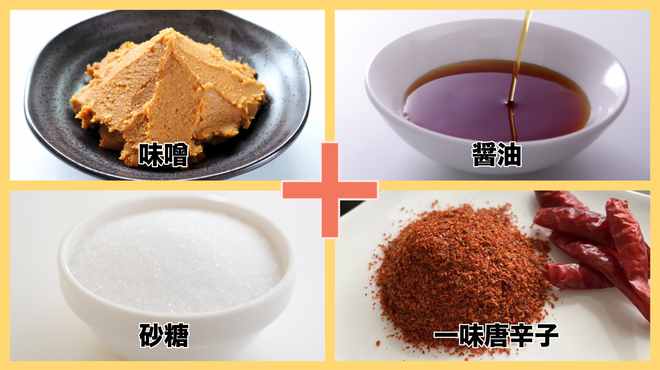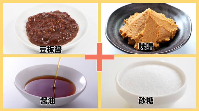豆板醤も甜麺醤もないという方は、大さじ1杯の味噌に対して、少量のしょうゆ、砂糖、一味唐辛子を加えてください。よく使う調味料を合わせるだけでも、コチュジャンに近い味わいを作れますよ。