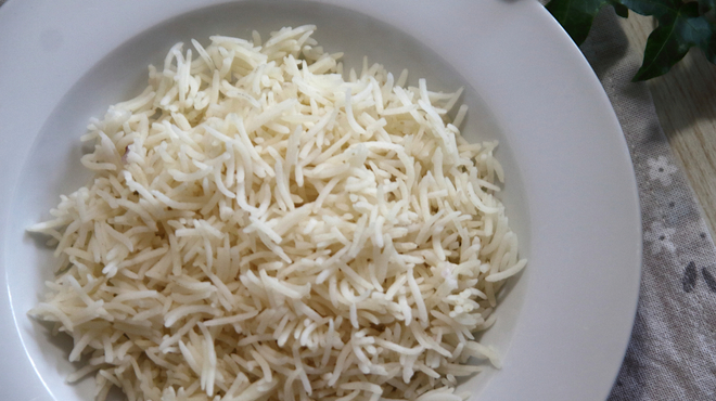 | バスマティライス | 細長く、香り高いインド米 湯取り法で調理 |