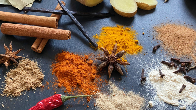 シナモン、ブラックペッパー カルダモン、チリ、クローブ キャラウェイ、メース クミンパウダー、ターメリックなど 複数のスパイスがミックスされたもの |