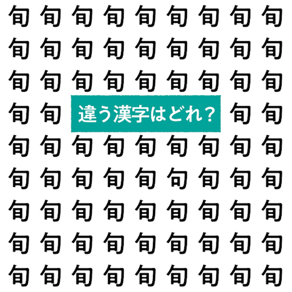 漢字間違い探しに挑戦!たくさん並ぶ「旬」の中に、ひとつだけ違う文字があります。さて、どれが違うか分かりますか?よーく見比べて、答えを見つけてみてくださいね。