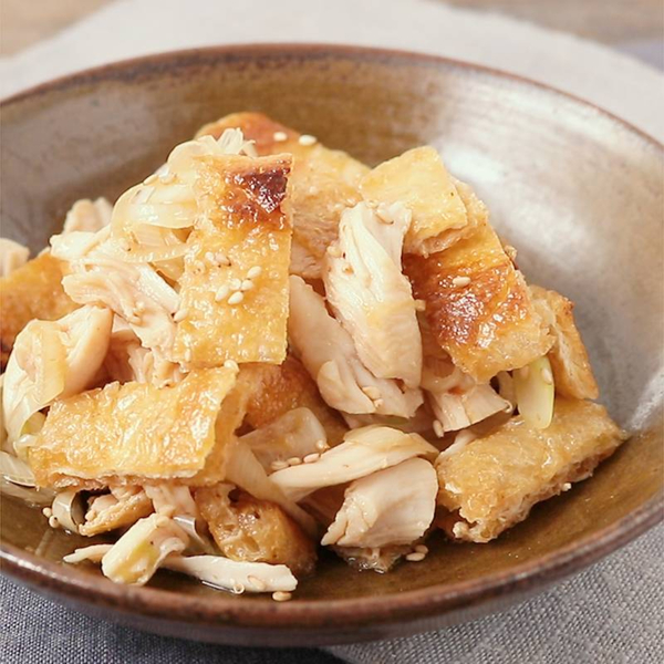 困ったときのあと一品にぴったりなのが、こちらの油揚げとささみのさっぱり和え。箸休めとしても活躍してくれる、ホッとする味わいが魅力の一品です。こんがりと焼き色がつくまで加熱した油揚げは、口に入れた瞬間のカリカリ食感がたまりませんよ。シンプルな材料でさっとお作りいただけるので、ぜひお気軽にお試しください。