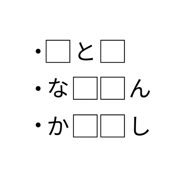 クイズです!四角に入る共通の2文字はなんでしょうか?種類が豊富で、小さいけれどさまざまなシーンで活躍する、ある食材の名前です。いろいろな言葉を当てはめて、よーく考えてみてくださいね。