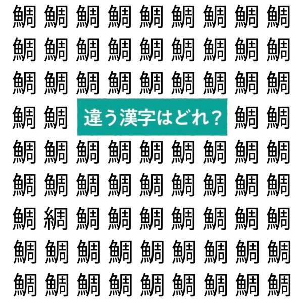 【漢字間違い探し】“鯛”の中にある違う文字はどれ?5秒でわかったらすごい!気になる正解は…