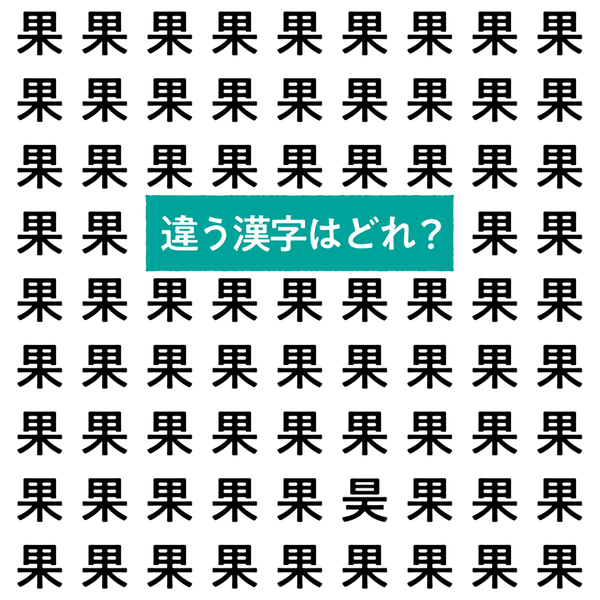 漢字間違い探しにチャレンジ!ずらりと並んだ「果」という漢字の中に、ひとつだけ違う字が混ざっています。さて、どんな字が紛れ込んでいるか分かりますか?