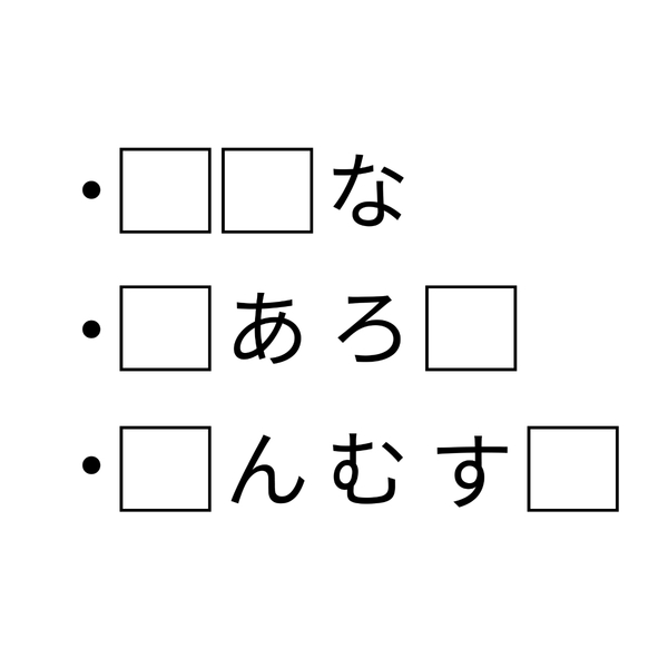 穴埋めクイズです!四角に入る共通の2文字はなんでしょうか?旨味たっぷりでプリプリな食感が魅力の、ある食材の名前です。いろんな言葉を当てはめて、よーく考えてみてくださいね。