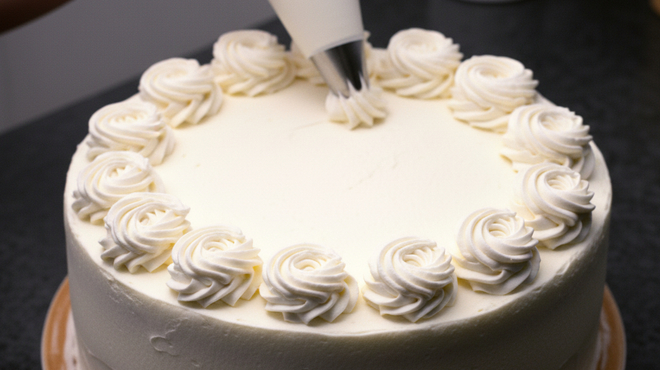 乳脂肪分が高い生クリームは、絞りだすと角が丸くやわらかい印象になります。なめらかでつやのある仕上がりですが、形のキープ力はやや弱めです。泡立てすぎるとぼそぼそとした見た目になるので注意しましょう。色は生成のようなうっすらと黄色がかっており、温かみのある見た目にしたいときにおすすめです。