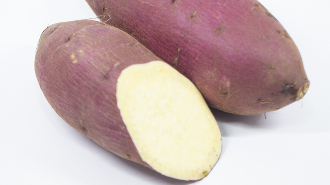 しっとり系やねっとり系のさつまいもが流行する前は、このホクホク系のさつまいもがほとんどでした。粉質でホクホクとした食感、やさしい甘みが魅力です。焼き芋はもちろん、天ぷらや炒め物、サラダなどによく合います。