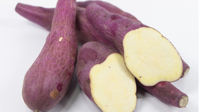 ホクホクとした食感とやさしい甘さがあります。紫芋は甘さが控えめのものが多いのですが、パープルスイートロードはその中では甘さが強めの品種です。さつまいもの色を活かしたスイーツなどに使うと、華やかな仕上がりになりますよ。
