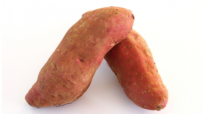 安納芋と同様に甘みが強いのですが、安納芋に比べるとねっとりとした食感の中にホクホクとした食感もあるのが特徴です。形が美しく、焼き芋にしたときの見栄えがよいのも魅力。べにはるかから派生したオリジナルブランドとして、大分県の「甘太くん」、茨城県の「紅天使」などもあります。