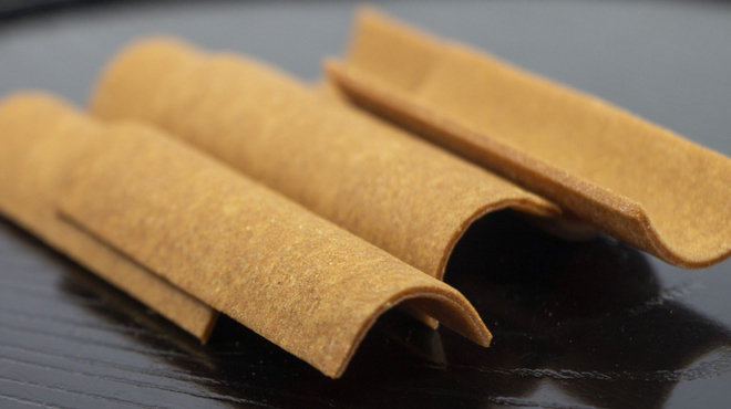 ニッキを使った食べ物で最も有名なのが、京都銘菓「八ツ橋」です。米粉や砂糖、粉末にしたニッキを混ぜた生地を香ばしく焼き上げたお菓子です。