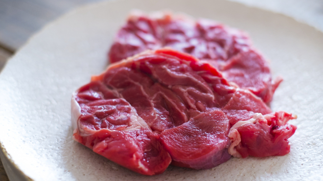 赤身と脂身が交互に重なり合った層になっているのが特徴で、煮込み料理に使うと脂身の旨みを感じる、濃厚な味わいに仕上がります。