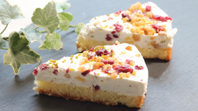 こちらのカッサータはラズベリーやピスタチオを散りばめて、カラフルで見た目もかわいく仕上げています。さっぱりとしたリコッタチーズに、甘酸っぱいラズベリーや香ばしいピスタチオがアクセントになって食べ飽きないおいしさ!テーブルを華やかに彩ってくれるので、おもてなしのデザートにもおすすめですよ。お家でも簡単に作ることができるので、ぜひ挑戦してみてくださいね。