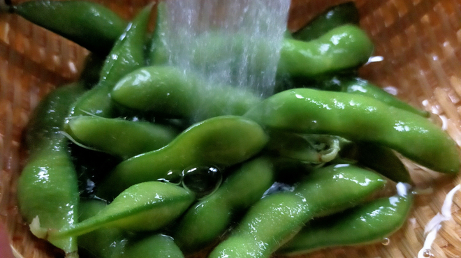 冷蔵保存と同様に枝豆を枝から外したら、しっかりと水で洗いましょう。そのあと、塩をふりかけてよく揉み込んでください。