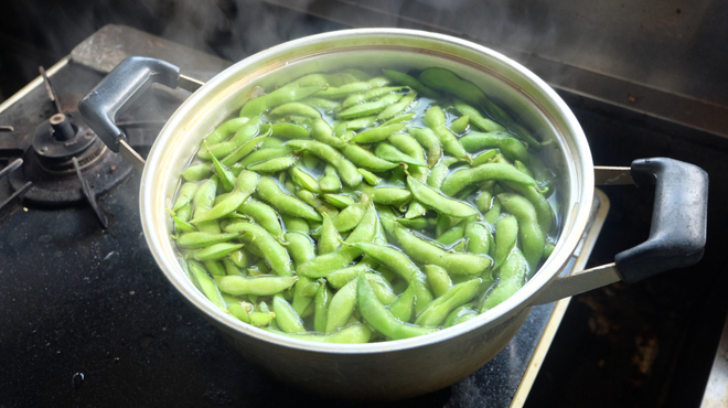 冷凍枝豆を料理に使わずにおつまみとしてそのまま食べる場合は、凍ったまま沸騰したお湯でサッとゆで、ザルに上げて塩をふれば食べられます。