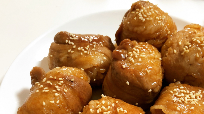| 肉巻きおにぎり | 甘辛いタレと豚肉で食べ応え抜群 お弁当やイベントにもぴったり |