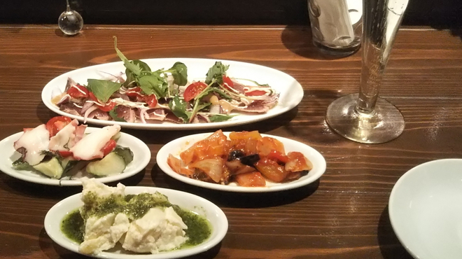 ピクルス、ポテトサラダ、魚のマリネ、オイルサーディンのように調理したものを冷やした料理のこと。乾き物の次に注文します。
