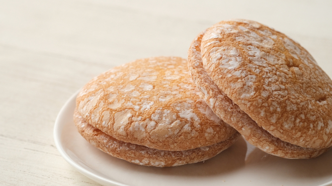 「ブッセ」は、ビスキュイ生地を小さな円形に焼いて、クリームやジャムをサンドしたお菓子。外はさっくり、中はふんわり。手のひらサイズで食べやすく、ふだんのおやつにもぴったりです。