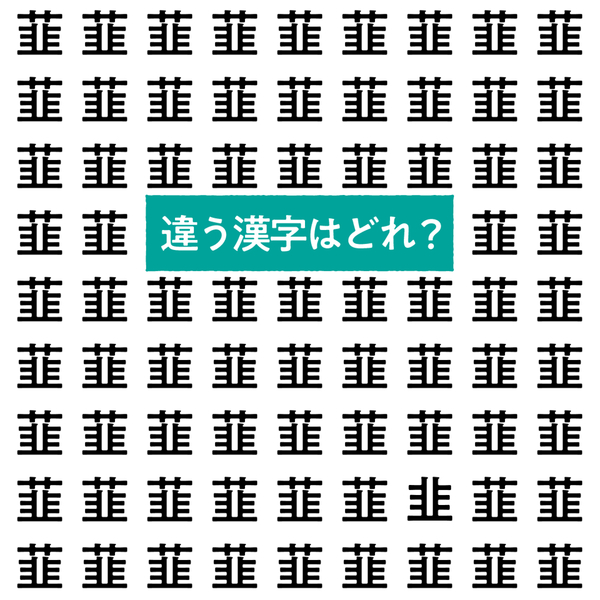 漢字の間違い探しクイズです!たくさん並んだ「韮」という漢字。でもその中にひとつだけ違う漢字が隠れています。どこにあるか、ぜひ探してみてくださいね。