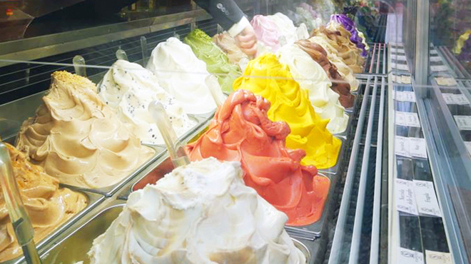 ジェラートとは、牛乳や生クリーム、砂糖を混ぜて冷凍したイタリアンスイーツのひとつです。アイスクリームよりも乳脂肪が低く、果物やコーヒー、チョコレート、ピスタチオなどを加え、さまざまな風味を生かしたアイスです。