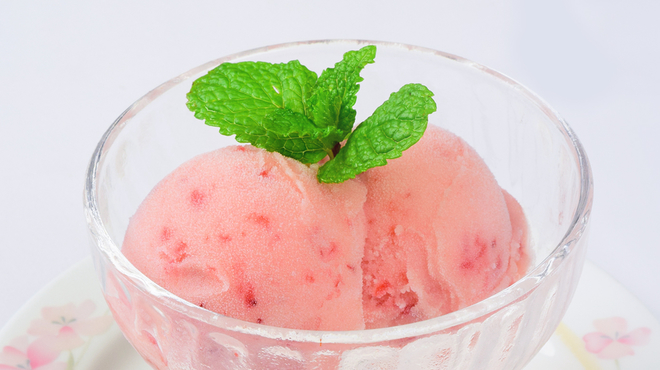 シャーベットは、果汁や砂糖、水、卵白などを主な材料とする冷製スイーツです。乳製品はほとんど使われないため、乳固形分は3.0%未満と少なく、分類上は「氷菓」にあたります。口あたりはジェラートよりもシャリシャリとして軽やか。果物の風味をさっぱり味わいたいときにぴったりのスイーツです。