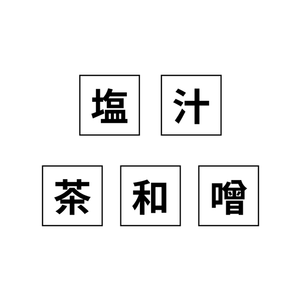 「塩」「汁」「茶」「和」「噌」の5つの漢字。じつはある食べ物から連想する漢字をひとつ挙げてもらうアンケートで、多かった回答を並べたものなんです。いったいどんな食べ物から思い浮かべたのか、ぜひ当ててみてくださいね。
